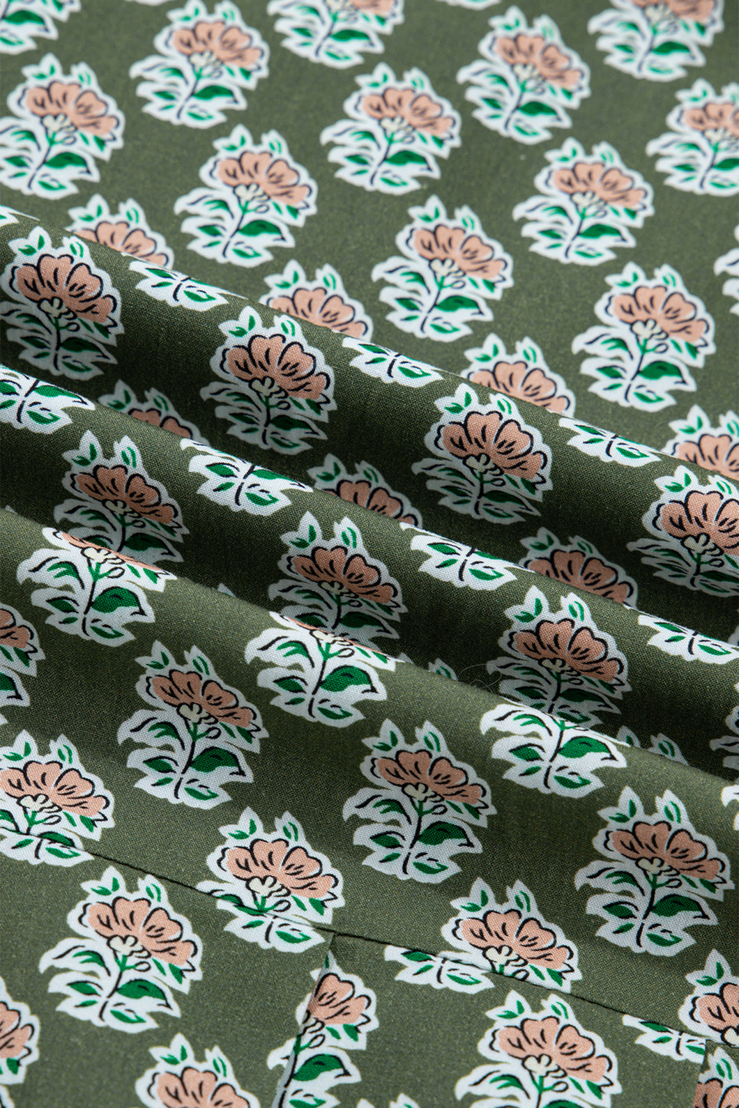3/4 sleeve floral dress offers comfortable, balanced coverage.