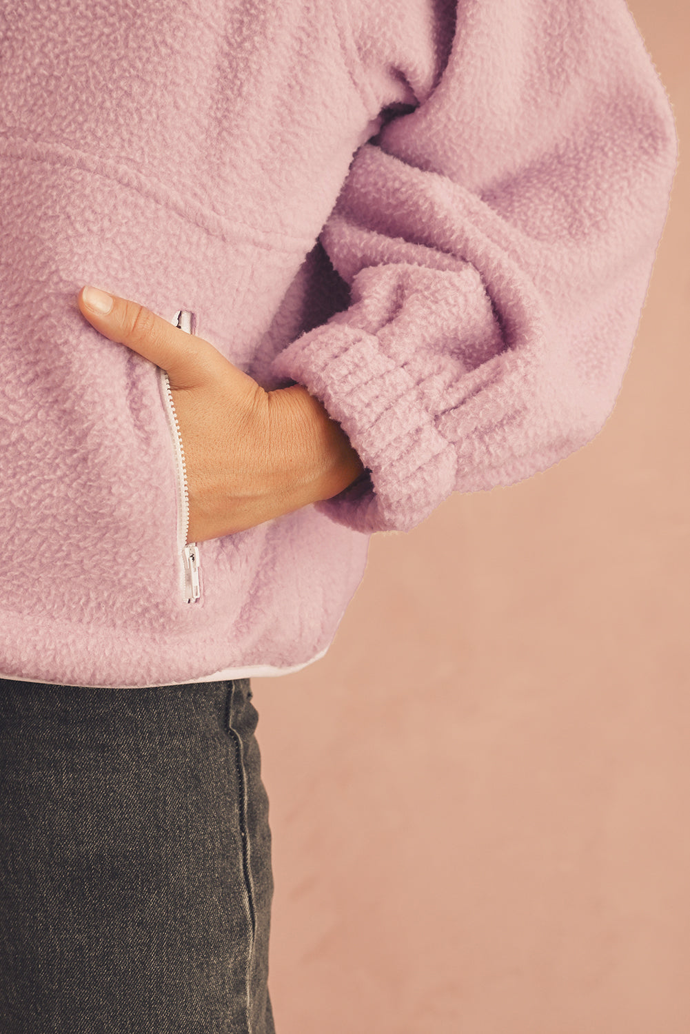Fushia High Collar Long Sleeve Pocket Pullover Sweatshirt