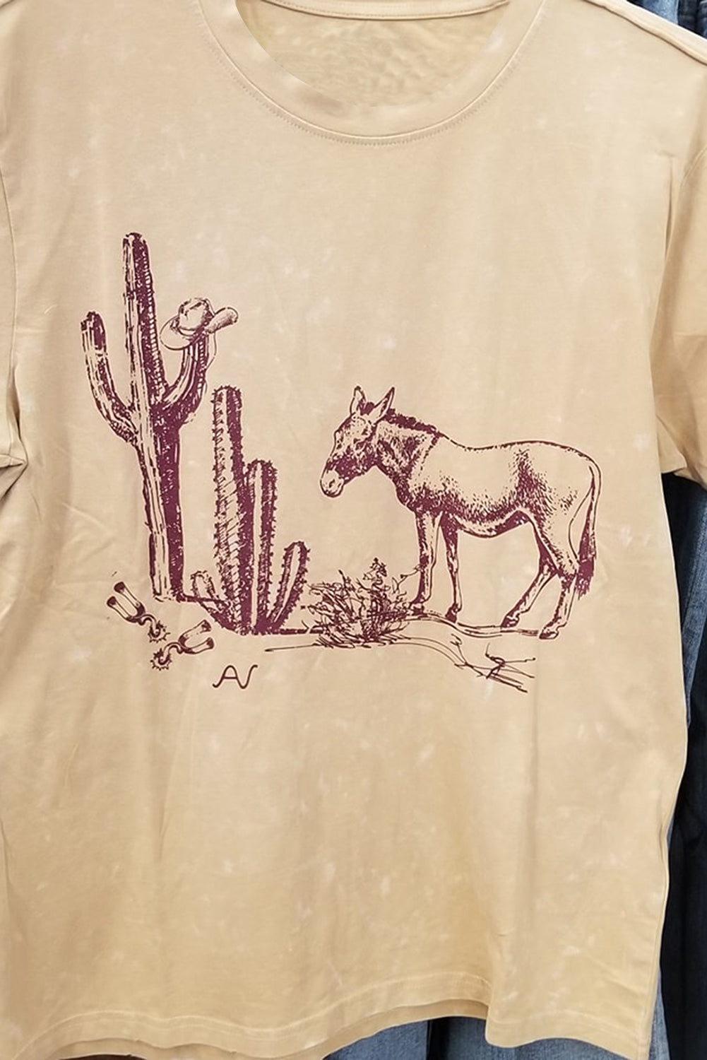 • Bold burro and cactus graphic captures the spirit of the Wild West.