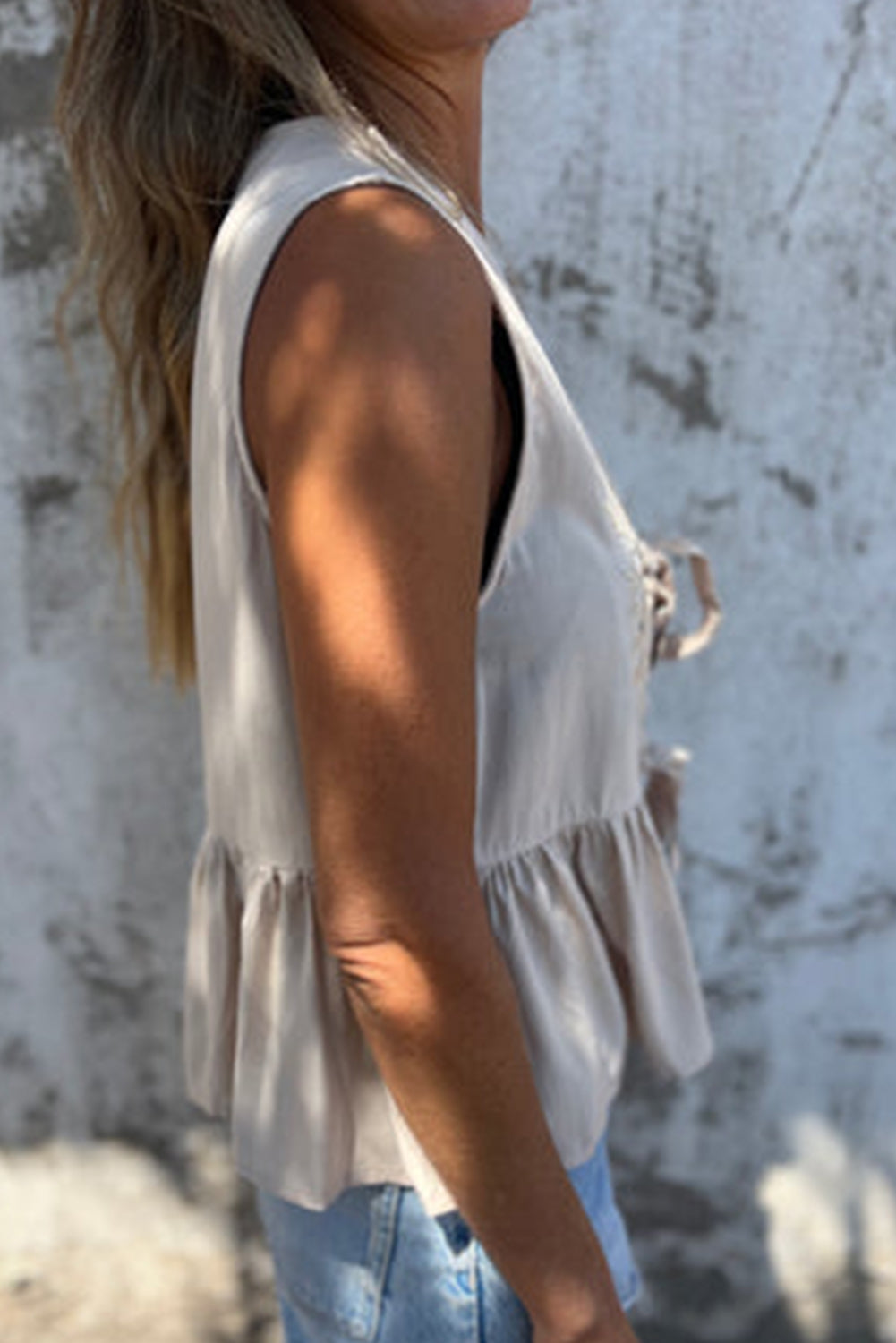 Parchment Floral Cutout Knot V Neck Sleeveless Top