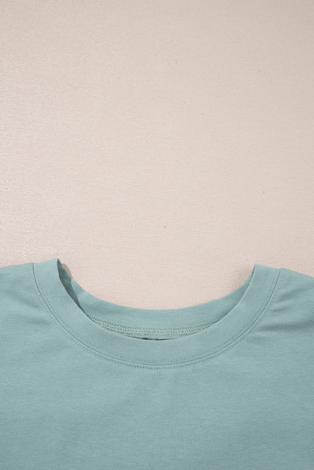 Smoke Green Frayed Denim Star Patched Oversize T Shirt