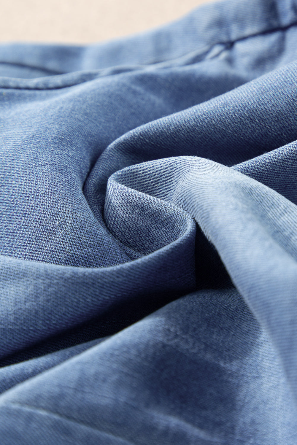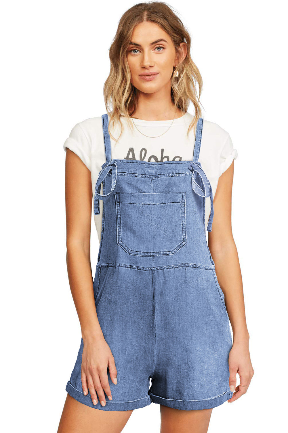 Light Blue Adjustable Knotted Straps Pocketed Denim Overalls